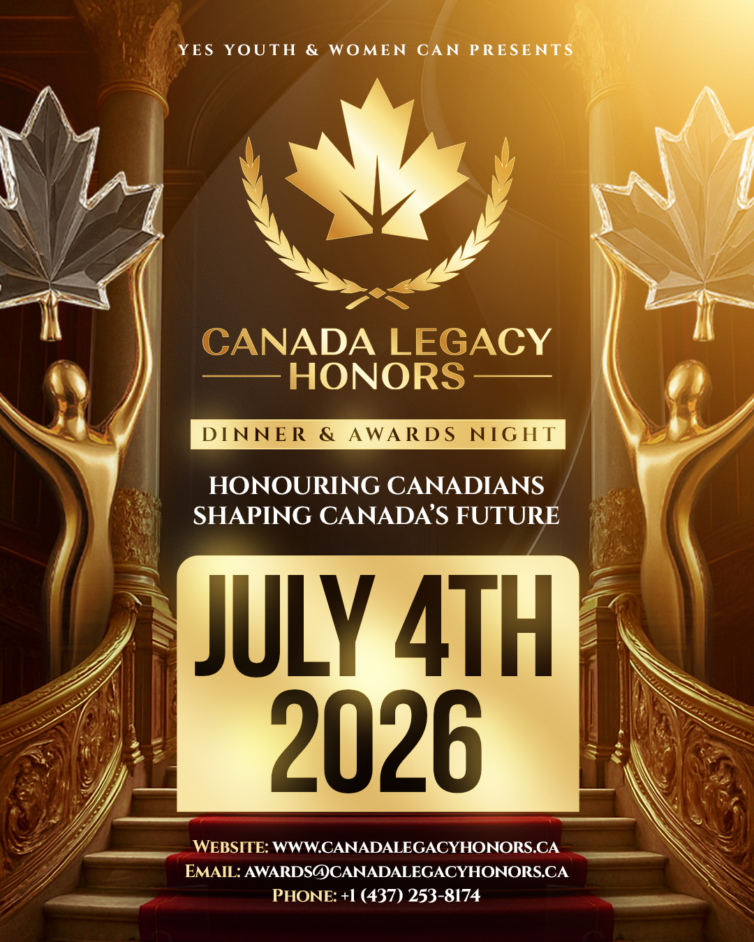 Canada Legacy Honors is presented in collaboration with leading national and global partners, bringing together respected voices across business, culture, media, and innovation to deliver a world-class recognition platform. The annual ceremony is a nationally recognized celebration, featuring distinguished presenters, thought leaders, and cultural figures who gather to honour individuals and organizations shaping Canada’s future.